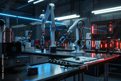 A robot is working on a table in a lab