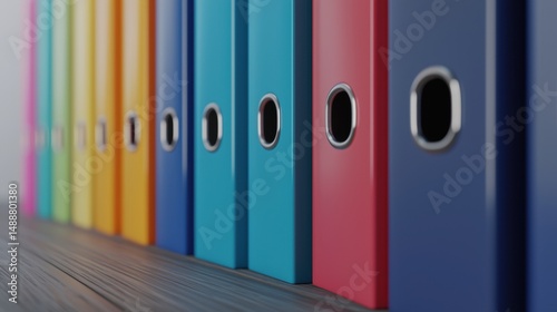 folder, row, wooden, surface, file, variety, vibrant, colours, blue, orange, pink, green, silver, hole, contrast, colourful, sense, order, organisation, natural, element, scene, file folder, vibrant color