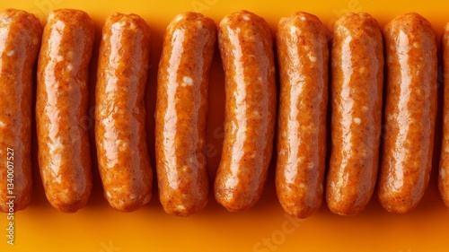 sausage, sausage, row, line, orange, background, brown, cooked, food, meat, delicious, tasty, appetising, grilled, breakfast, lunch, dinner, snack, protein, cookery, culinary, gastronomy, receipe, ingredient, healthy, unhealthy, diet, spicey, favor, aroma, texture, glossy, shiny, summer, autumn, winter, spring, eat, meal, plate, closeup, topview, still life, photo, image