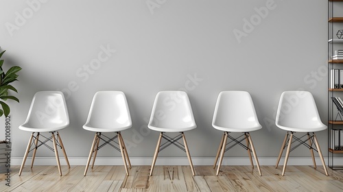 row, white, chair, empty, wall, shelf, office, supply, right, side, space, text, image, meeting, clean, minimalistic, setup, conference, seminar, presentation, furniture, seating, arrangement, organised, background, workshop, session, sleek, design, functional, unoccupied, versatility, utility, orderly, simplistic, interior, corporate, adaptability, efficiency, sharpened, room, educational, event, professional
