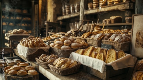 bakery, bread, pastry, sweet, counter, rustic, wooden, shelf, basket, dough, flour, food, bake, artisan, shop, store, traditional, delicious, fresh, gold, brown, white, smell, aroma, warm, morning, breakfast, snack, dessert, treat, indulgence, crusty, fluffy, soft, chewy, crispy, crunch, homemade, organic, local, farm, village, country, hand-made, handcraft