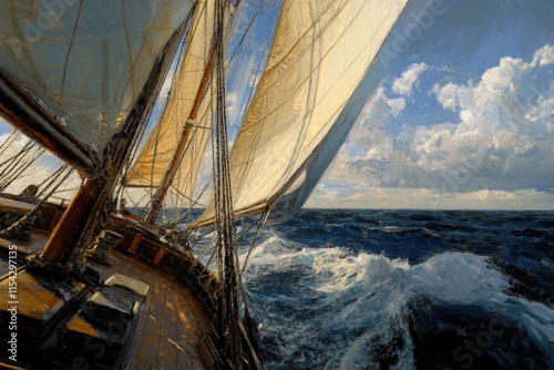 A sailboat gliding across the calm waters of the ocean, perfect for use as a background or illustration