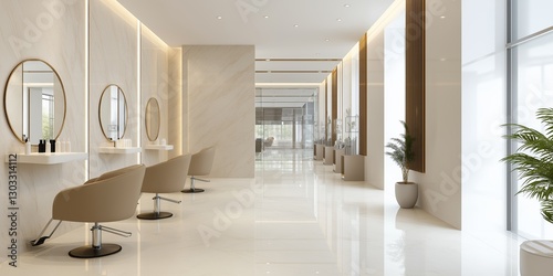 salon, white, wall, mirror, modern, design, lot, interior, brown, several, chair, potted, plant, architecture, room, office, floor, indoor, hall, empty, building, business, window, light, nobody, luxury, style, corridor, inside, space, contemporary, clean, home, bright, lobby, decoration, wood, entrance, hotel, hallway, corporate, door, apartment, glasses, house, view, furniture, reception, marble