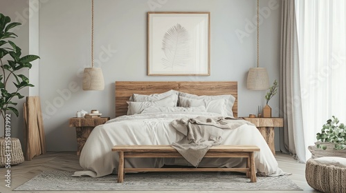 A Scandinavian-style bedroom with clean lines and cozy textures