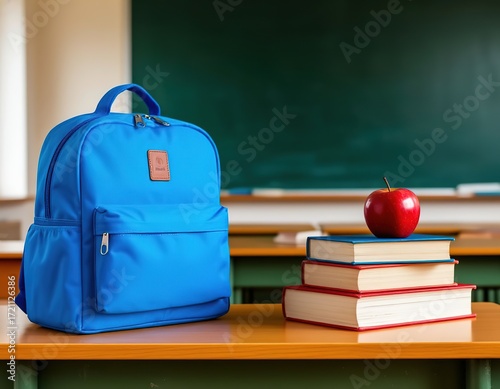 school, backpack, stand, desk, stack, book, apple, blackboard, childhood, copy space, blackboard, study, education, book, back, concept, cognition, learn, background, college, back to school, stationery, classroom, blue, learning, baggage, class, bag, notebook, empty, preschool, graduation, appointment, educational, elementary, supply