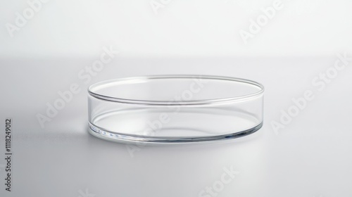 A scientific petri dish displayed at eye level from the side, isolated on a clean white surface