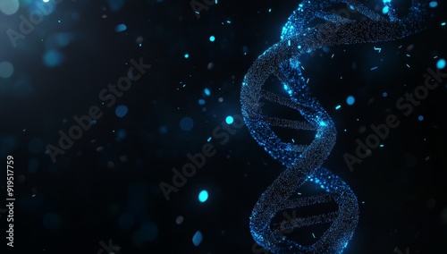 A scientific wallpaper helix cell genetic medical biotechnology biology bio. A digital futuristic medical concept health picture in blue background. Technology gene DNA abstract molecule medicine