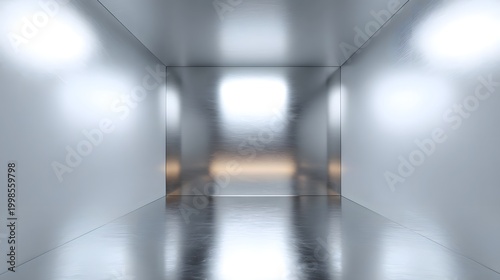minimalist, modern, abstract, interior, architecture, perspective, hallway, corridor, reflective, smooth, shiny, symmetry, geometry, empty, light, bright, space, design, structure, pristine, futuristic, aglow, glow, ambient, deep, infinite, huge, pathway, gallery, showroom, sleek, polished, surface, texture, monochrome, grey, white, metallic, material, passage, depth, contemporary, clean