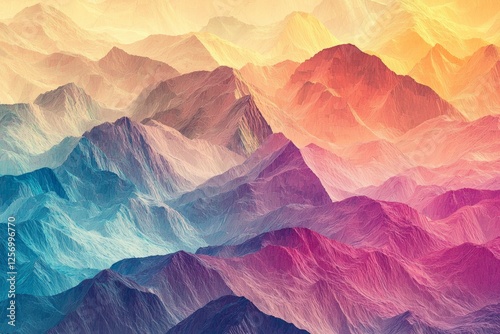 A seamless pattern of colorful mountains, layered and textured, reminiscent of an otherworldly landscape. The colors blend seamlessly from one mountain to another