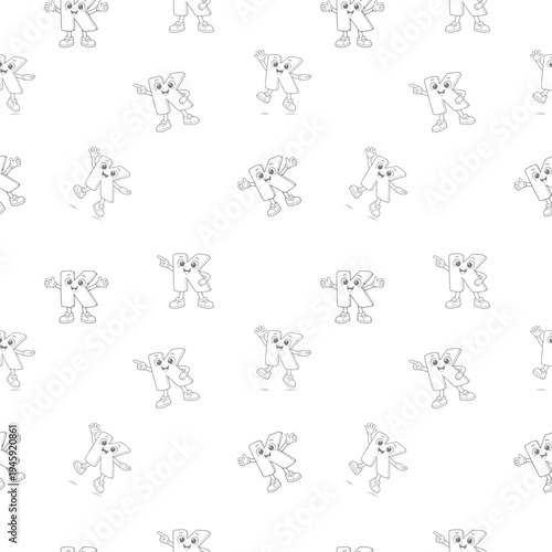 A seamless scatter of K letters in gentle gray sketch strokes with tiny decorative accents for subtle children backgrounds