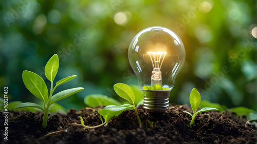 green energy, environmentally friendly, germ bud, plant, light bulb, growth, nature, environment, sustainability, hope, future, renewable energy, earth, dirtied, bokeh, blurred background, closeup, natural light, environmentalism, ecology, conservation, positive, clean energy, technology, innovation, organic, light, bulb, germinating, spring, summer, business, education, poster, booklet, graphic, natural resource