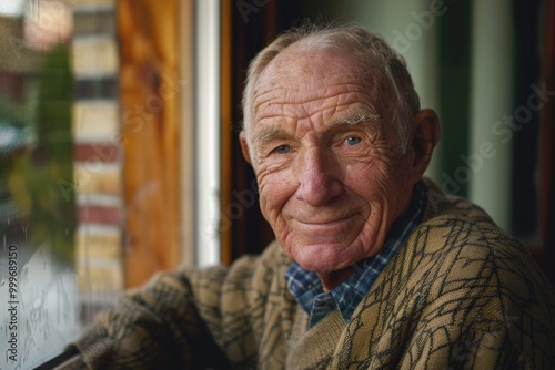 A senior gentleman sitting by the window