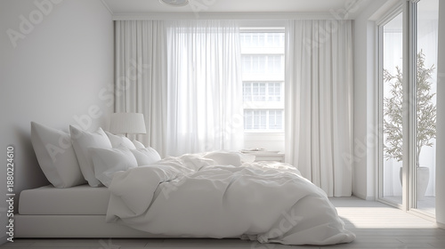 bedchamber, 2026, cloud, dancer, colours, year, white, minimalist, serene, peaceful, calm, clean, modern, simple, elegant, bright, light, natural, window, curtain, sheer, bed, pillow, comforter, duvet, lamp, shade, wall, floor, interior, design, decor, furniture, architecture, calmness, relaxation, rest, sleep, room, hotel, home