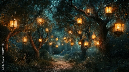forest, lantern, path, tree, light, night, glow, nature, calmness, ambience, magic, scenery, illumination, peaceful, aethereal, landscape, foliage, adventure, exploration, shadow, beauty, enchanting, dusk, serenity, wonder, rustic, pathway, warmth, charme, mystical, dreamlike, environment, twilight, atmosphere, wilderness, scenic, calm, inviting, escape, journey, harmony, solitude, reflections, sight