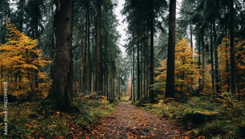 forest, path, tree, autumn, foliage, wood, nature, timberland, trail, leaf, gold, tranquil, serene, landscape, environment, scenic, outdoors, season, fall, tree, sunlight, light, ground, brown, green, yellow, plant, growth, tall, trunk, bark, wood, peaceful, natural, scene, colours, colourful, hiking, walking, adventure, exploration, beauty, wilderness, wild, nobody, quiet, calm, fresh