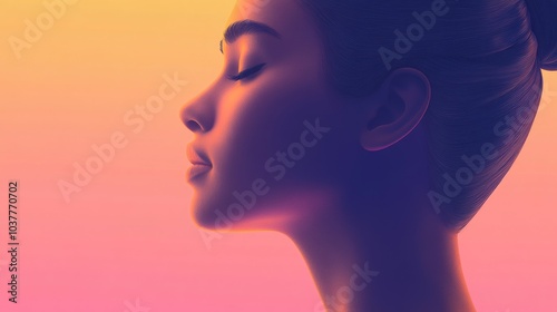 A serene profile of a woman against a soft gradient backdrop, depicting calmness and contemplation in vibrant hues.