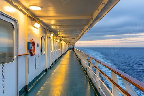 ocean, deck, cruise, ship, travel, water, horizon, sky, pathway, railing, light, sunset, wave, journey, leisure, marin, scenery, exploration, adventure, calmness, vacation, maritime, blue, cloud, nature, relaxation, coastline, landscape, view, distance, calm, environment, tour tourism, escape, cruise line, passage, life events, freedom, peace, seascape, atmosphere, weather, beauty, serenity