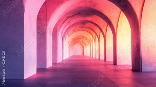 A series of vibrant arches form a captivating architectural perspective, leading the eye into the distance