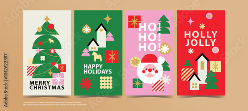 A set of Christmas and New Year backgrounds for social media and print. Featuring modern designs with Christmas elements in vector illustrations.