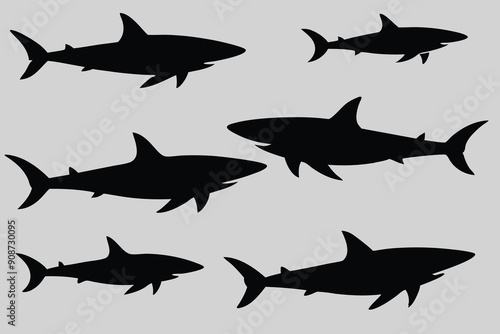 A set of different category shark silhouette design without background.