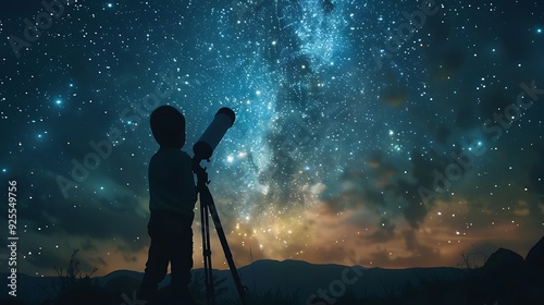 night, sky, star, telescope, children, silhouette, looking, up, space, galaxy, milky way, universe, astronomy, science, dream, wonder, explore, discover, dark, blue, black, horizon, landscape, mountain, grass, field, nature, observation, exploration, discovery, dreamy, magical, mystery, cosmos