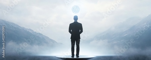 man, silhouette, orb, mist, landscape, oneness, serenity, calmness, mystery, hope, imagination, solitude, harmony, vision, cosmos, motivation, exploration, discovery, inspiration, innovation, perspective, confidence, challenge, dream, future, path, journey, growth, aspiration, thought, connection, purpose, nirvana, clarity, potential, energy, light, empowerment, existence, ascent, awakening, beauty, nature