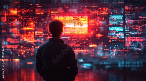 A Silhouette of a Person in Front of a Futuristic Digital Interface