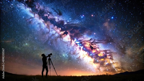A silhouette of a person under a starry sky, capturing the beauty and vastness of the night sky, perfect for stargazing themes.
