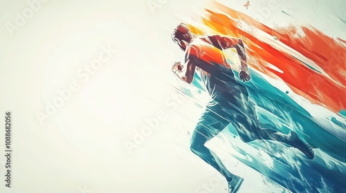 A silhouette of a runner against a vibrant backdrop of colorful brushstrokes, representing speed, energy, and movement.