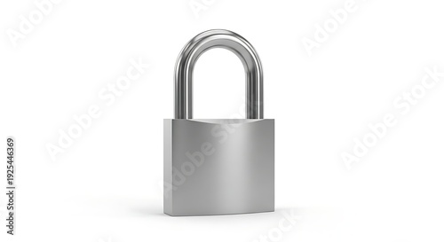 A silver padlock with an open shackle on white background