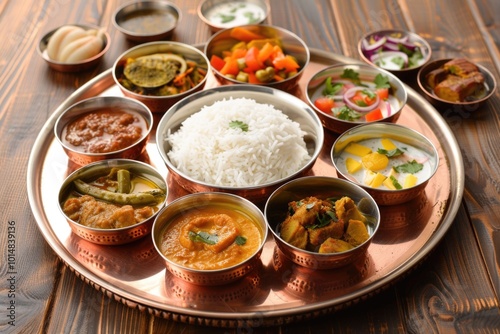 A silver plate filled with different types of food, ideal for editorial or commercial use