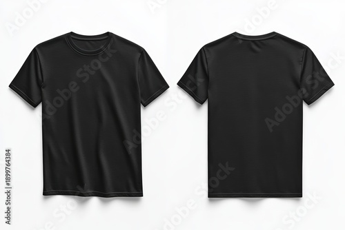 A simple black t-shirt displayed from both front and back views, featuring a classic design suitable for casual wear.