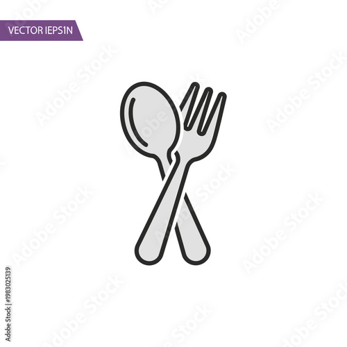 A simple, clean line art illustration of a spoon and fork crossed over each other.