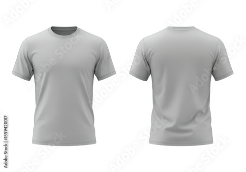 A simple grey tshirt is displayed from the front and back, isolated on transparent background, suitable for various design projects