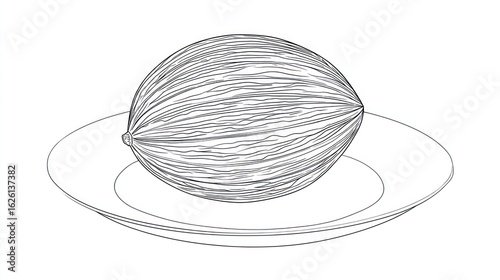 fruit, melon, plate, drawing, line, vignetting, food, still, life, simple, monochrome, black, white, graphic, illustration, design, outline, contour, organic, shape, round, sphere, dish, cut-out, vector, minimalist, art, image, healthy, fresh, produce, vegetable, pale, light, clean