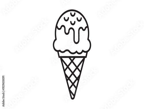 ice cream, cone, melting, dessert, sweet, treat, food, illustration, drawing, line art, black-and-white, simple, cartoon, fun, page, children, children, summer, hot, weather, cold, refreshment, yum, delicious, tasty, eating, snack, funny, whimsical, playful, cute, adorable, icon, symbol, graphic, design, element