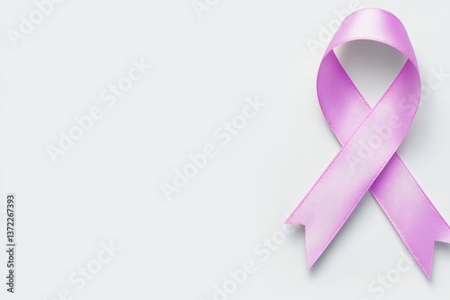 A simple pink ribbon on a white background, representing breast cancer awareness and hope