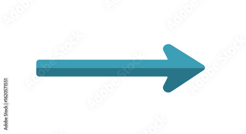 A simple teal arrow pointing to the right direction with a subtle shadow effect on a white background