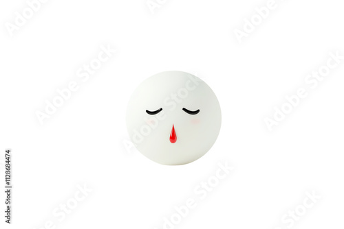 A simple white face with closed eyes and a small red dot for a mouth, conveying a serene or sad expression.