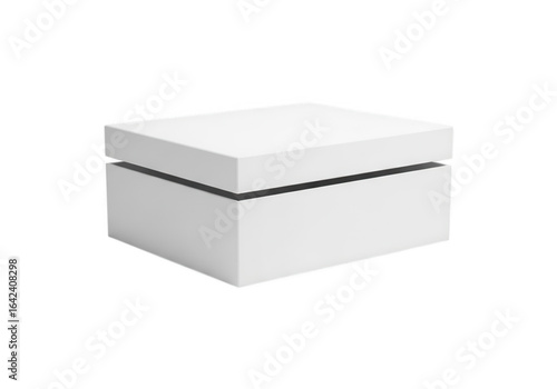 A simple white rectangular gift box with a dark band isolated on transparent background