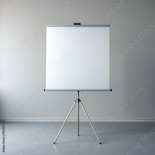 A simple yet professional freestanding projector screen on a tripod stand. ready to display presentations. images. or videos.