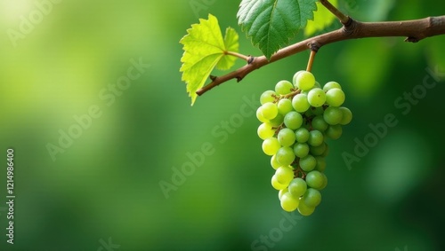 A single bunch of vibrant green grapes hangs delicately from a vine, showcasing the beauty of nature's bounty.
