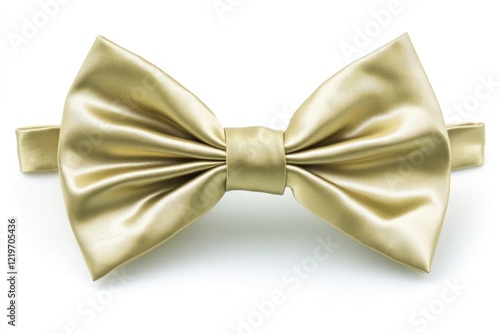 A single gold bow tie on a clean white background, perfect for close-up photography or as a prop