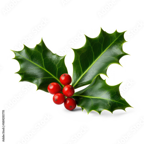 A single holly berry with green leaves on a transparent background
