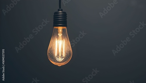 A single incandescent light bulb, glowing warmly against a dark backdrop.