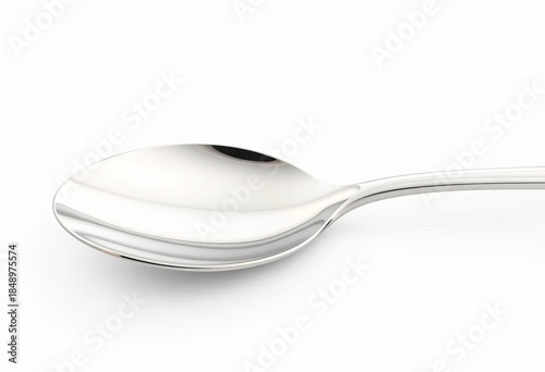 A single metallic spoon, shiny and reflective, isolated on white, symbol, object