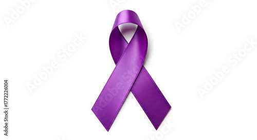 A single purple awareness ribbon sits against white, looping into a gentle knot. People unite here
