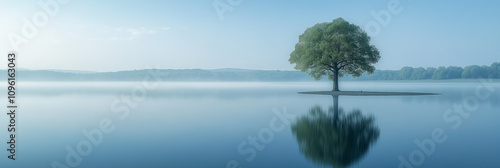 A single tree growing in the river