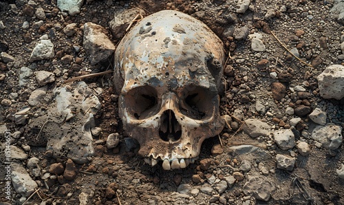 A skull lies on the ground, Generative AI