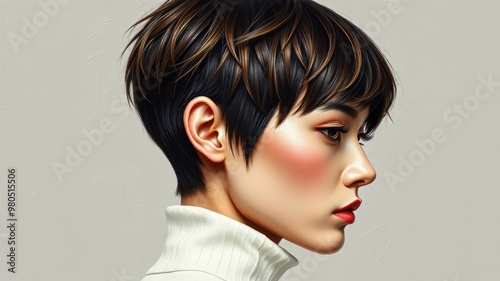 stylish, short, haircut, streamlined, choppy, layer, textured, edge, subtile, coiffure, fashion, elegant, polished, refined, sophisticated, luxurious, striking, daring, youthful, energetic, stunning, gorgeous, attractive, photogenic, ravishing, alluring, charming, fetching